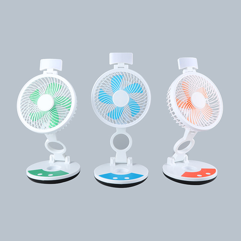 portable, rechargeable folding desktop fan with an integrated LED light.